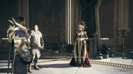She is introduced as the "ruler" of Atlas and the most trusted consort of Thelos. Although there are clues that suggest that she is a mere tool for the god to keep himself in power. One can learn more about her in the side quest The Queen's Passage.